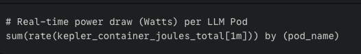 | Joules per Request | Kepler + OTel | Are my inference workload becoming effitient? |